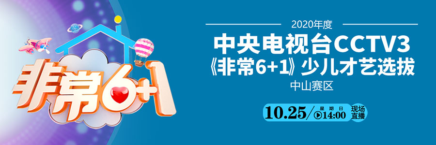 2020年度中央電視臺CCTV3《非常6+1》少兒才藝選拔中山賽區(qū)開賽,10月25日下午2點,中山日報全程直播,敬請關(guān)注