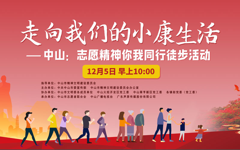 12月5日是第35個國際志愿者日,我市目前正舉辦“走向我們的小康生活”——中山市志愿服務(wù)周系列活動。11月30日至12月6日期間志愿周期間,全市各鎮(zhèn)街將陸續(xù)開展志愿宣講活動、致敬志愿者亮燈、志愿者隊伍方陣徒步活動、青少年助力垃圾分類志愿服務(wù)等活動。