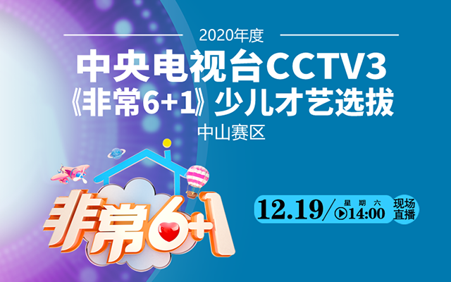 2020年度中央電視臺CCTV3《非常6+1》少兒才藝選拔中山賽區(qū)復(fù)賽將于12月19日下午2點舉行,中山日報報業(yè)集團(tuán)·中山網(wǎng)全程直播,敬請關(guān)注!