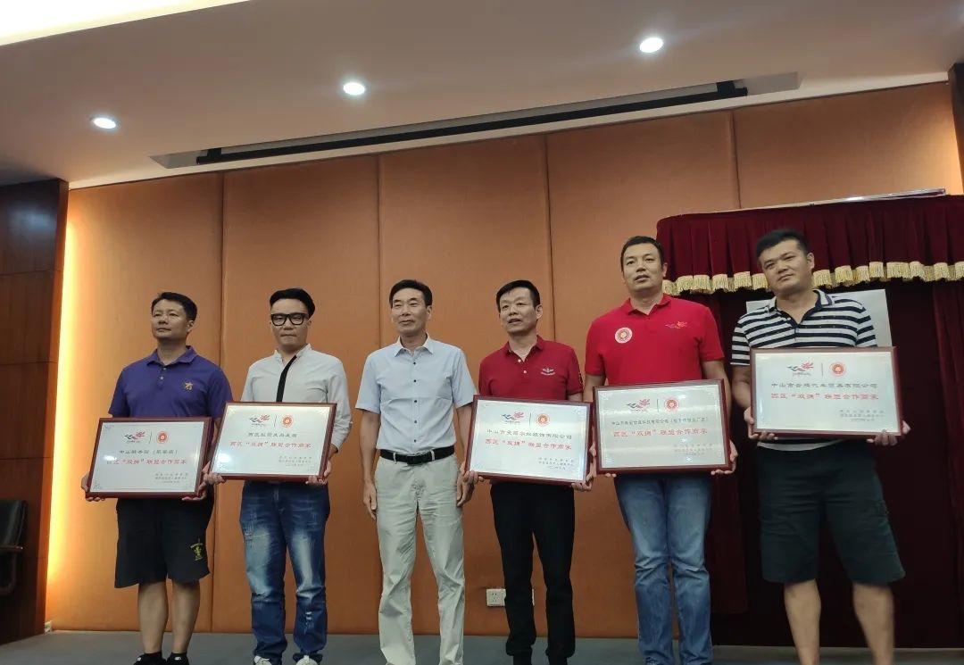 △領(lǐng)導(dǎo)和合作商家代表上臺(tái)揭牌,西區(qū)“雙擁”聯(lián)盟正式成立 會(huì)上,熊云峰分別為合作商家負(fù)責(zé)人頒授紀(jì)念牌匾。至此,中山市鎮(zhèn)區(qū)首個(gè)以退役軍人及其他優(yōu)撫對(duì)象為主要服務(wù)對(duì)象的組織正式成立。 △熊云峰委員向五家合作企業(yè)商家頒發(fā)紀(jì)念牌匾 據(jù)悉,為聯(lián)動(dòng)社會(huì)力量,共同為轄區(qū)退役軍人獻(xiàn)愛心,西區(qū)發(fā)動(dòng)轄區(qū)五家企業(yè)聯(lián)合成立“雙擁聯(lián)盟”,分別為轄區(qū)退役軍人定制專屬優(yōu)惠方案,凡符合條件的退役軍人憑證(軍官證、士兵證、退伍證等)消費(fèi)即可享受相關(guān)優(yōu)惠。