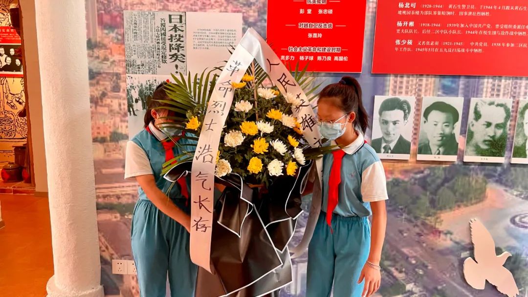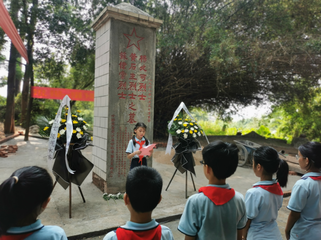 少先隊員代表、中心小學學生黃可馨為烈士們獻詞:作為未來祖國接班人,身上流淌著的是先輩們的紅色基因,傳承的是紅色的革命的理想,應(yīng)該養(yǎng)成文明進取的習慣,學習好各門文化知識,掌握好各種科學技術(shù),完善自己的思想,凈化自己的心靈。維護民族尊嚴和國家榮譽,將國家的明天建設(shè)得更加美好!