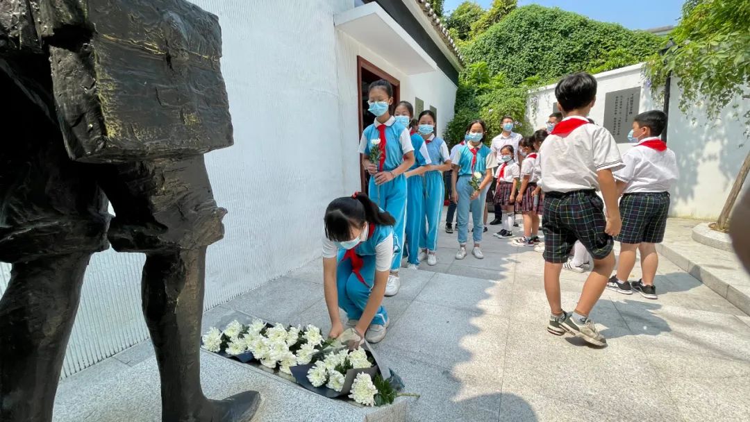 ▲在沙溪鎮(zhèn)黨委委員李海龍、副鎮(zhèn)長候選人余添宏帶領(lǐng)下,按順序依次向楊麗容烈士雕塑獻花。