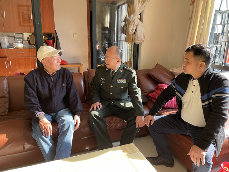 迎新春,送溫暖。1月19日,中山軍分區(qū)、中山市退役軍人事務(wù)局到南區(qū)街道聯(lián)合開(kāi)展2023年春節(jié)走訪慰問(wèn)活動(dòng),慰問(wèn)因公十級(jí)殘疾軍人和現(xiàn)役軍人家屬,向他們致以新春的問(wèn)候和美好祝愿。中山軍分區(qū)大校司令員李云濤參加慰問(wèn)。 李云濤一行先后來(lái)到現(xiàn)役軍人家屬曹軍民和因公十級(jí)殘疾軍人胡華銀的家中,為他們送去慰問(wèn)金和大米、食用油、面條、春聯(lián)等慰問(wèn)品,并送去新年的祝福和關(guān)懷。 在現(xiàn)役軍人曹秦的家中,李云濤感謝其家人為部隊(duì)輸送了優(yōu)秀人才,為國(guó)防建設(shè)作出了突出貢獻(xiàn)。據(jù)了解,曹軍民的兒子曹秦于2022年9月入伍,服役于新疆烏魯木齊武警總隊(duì)。曹軍民表示,非常感謝黨和政府對(duì)現(xiàn)役軍人家庭的關(guān)心,把孩子交給部隊(duì)很放心。  ▲李云濤一行慰問(wèn)84歲高齡的老兵胡華銀(左一)。 記者 張倩 攝