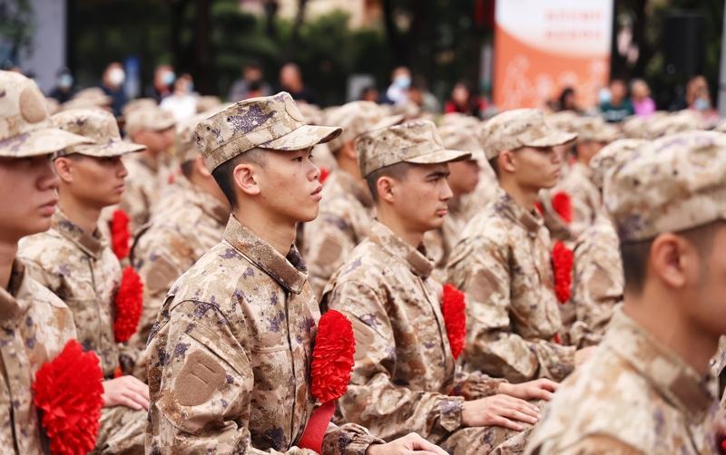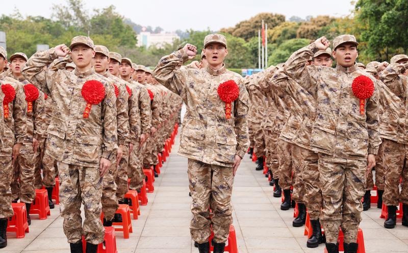 3月15日,中山市2023年新兵入伍歡送大會(huì)在中山市文化藝術(shù)中心廣場舉行。300多名新兵身穿迷彩服,胸戴大紅花,即將奔赴軍營。中山軍分區(qū)大校司令員、市征兵工作領(lǐng)導(dǎo)小組副組長李云濤,市委常委、中山軍分區(qū)大校政治委員、市征兵工作領(lǐng)導(dǎo)小組副組長劉燦瑩,市征兵工作領(lǐng)導(dǎo)小組副組長、副市長、市公安局局長魯罡,市征兵工作領(lǐng)導(dǎo)小組副組長、市征兵辦主任、軍分區(qū)大校副司令員李健出席送兵儀式。 300多名新兵身穿迷彩服,胸佩大紅花,即將奔赴軍營。記者 文波 攝