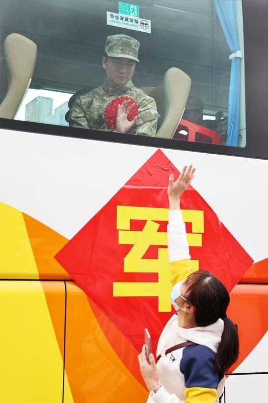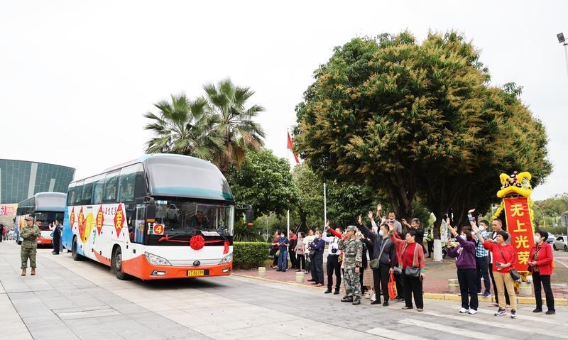 東區(qū)街道新兵潘子晨的母親鄭紅麗深情囑咐道:“兒行千里母擔(dān)憂。你們此行遠(yuǎn)離家鄉(xiāng)和親人,一定要銘記父老鄉(xiāng)親對你們的殷殷囑托,無論是在邊疆巡邏、高山上練兵,還是為祖國站崗,希望你們在部隊(duì)里傳承中山人敢為人先的闖勁,沖鋒在前,勇?lián)笕危橹猩饺嗣駹幑馓聿?!我們將為你們營造一個(gè)穩(wěn)固的‘大后方’,時(shí)刻支持你們?!?/p> 滿載著新兵的客車徐徐駛離。記者 文波 攝