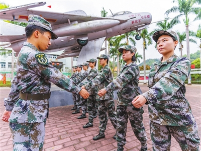 “向右看齊!向前看!現(xiàn)在教你們軍人隊(duì)列動(dòng)作中的脫帽戴帽要領(lǐng)……”3月21日下午,在中山市國防教育基地訓(xùn)練場上,一支七人訓(xùn)練小隊(duì)顯得格外特別,她們是今年上半年應(yīng)征入伍的中山女兵:梁晶、馮妙瑩、藍(lán)宇瑩、陳琬琪、溫黎嘉茵、劉燕彤、蘇汶詩。 她們都是00后女大學(xué)生,身著迷彩服,精神抖擻地在教官羅偉進(jìn)的帶領(lǐng)下有序而緊張地開展隊(duì)列訓(xùn)練?!捌叨浣鸹ā鼻酀赡鄣哪樕蠈憹M了對軍旅生活的向往和期待。她們將通過幾天的役前教育訓(xùn)練,邁出軍旅生活第一步。 ■五次報(bào)名應(yīng)征終圓夢 七朵金花中,沙溪鎮(zhèn)占據(jù)兩席名額,她們分別是藍(lán)宇瑩和劉燕彤。沙溪鎮(zhèn)武裝部工作人員劉偉立說:“從歷年來看,這次是我們鎮(zhèn)出女兵人數(shù)最多的一次。其中,龍聚環(huán)村民小組更是出兵大戶,幾乎每年都有男女兵從這里出?!?/p> 身高1.7米的劉燕彤就來自沙溪鎮(zhèn)樂群村(龍聚環(huán)村民小組),就讀于廣東海洋大學(xué),是一名大二學(xué)生?!拔矣洃浿忻看未謇镉腥水?dāng)兵入伍,都會(huì)舉行隆重的送兵儀式,整個(gè)村子鑼鼓喧天鞭炮齊鳴,還有舞獅表演助陣,好熱鬧。很小的時(shí)候我就覺得當(dāng)兵很威風(fēng)很光榮,在我心里也就埋下了要當(dāng)兵的種子?!眲⒀嗤f:“我對部隊(duì)生活充滿了期待,進(jìn)入部隊(duì)后我希望自己能考上軍校留在部隊(duì)長期發(fā)展?!?/p> 藍(lán)宇瑩來自沙溪鎮(zhèn)匯源社區(qū),就讀于廣東技術(shù)師范大學(xué),是一名大三學(xué)生。她曾在網(wǎng)上報(bào)名應(yīng)征了5次,可見其參軍入伍決心之大?!拔覐男【秃艹绨蒈娙?,從小學(xué)一直到大學(xué)都是學(xué)校國旗護(hù)衛(wèi)隊(duì)的隊(duì)員?!彼{(lán)宇瑩表示,幸運(yùn)的是今年3月份,自己終于圓夢軍營即將前往某戰(zhàn)區(qū)海軍服役。 藍(lán)宇瑩的母親錢梅香表示:“我非常支持女兒的決定,感覺入伍對女生來說是一種很好的鍛煉。如果有機(jī)會(huì),我還想讓小兒子上大學(xué)后也進(jìn)入部隊(duì)參軍報(bào)國,向姐姐學(xué)習(xí)?!?/p> ■對軍營生活充滿期待 七朵金花中,來自南朗街道下沙村的馮妙瑩就讀于廣東醫(yī)科大學(xué),今年6月份大學(xué)畢業(yè)?!拔覀冏黾议L的就是希望她入伍后好好干,加油努力?!瘪T妙瑩的父親不善言辭,非常支持女兒的從軍決定,“我年輕時(shí)也想當(dāng)兵,但身體條件不合格,錯(cuò)失了機(jī)會(huì)。” “我大一就加入了學(xué)校國旗護(hù)衛(wèi)隊(duì),通過日復(fù)一日的隊(duì)列訓(xùn)練,開始向往激情如火的軍營生活?!瘪T妙瑩告訴記者,“對即將到來的部隊(duì)生活,既期待又有點(diǎn)擔(dān)心。擔(dān)心去到一個(gè)陌生的環(huán)境會(huì)不適應(yīng),但既然選擇了這條路,我一定會(huì)克服困難,堅(jiān)持下去,爭取留在部隊(duì)發(fā)展,早日成為一名優(yōu)秀軍人?!?/p> 來自民眾街道的梁晶就讀于南華大學(xué),今年6月即將大學(xué)畢業(yè)。她剛進(jìn)入大一就提交了入黨申請書,2022年正式成為一名共產(chǎn)黨員。梁晶說:“2021年河南特大暴雨期間,通過新聞媒體看到中國軍人逆流而上,連夜出征轉(zhuǎn)移群眾的場景讓我深受感動(dòng)。那時(shí)起,我就萌生了參軍的想法?!毙疫\(yùn)的是,她今年終于圓夢軍營,她表示:“面對未知的軍營生活,我已經(jīng)作好了心理準(zhǔn)備。進(jìn)入部隊(duì)后,我一定會(huì)好好適應(yīng),有信心能在部隊(duì)干好?!?/p> 臨近傍晚,一天的訓(xùn)練就要結(jié)束了,中山市國防教育基地門口上方一條寫著“保家衛(wèi)國終不悔,綠色軍營獻(xiàn)青春”的紅色橫幅迎風(fēng)招展,不遠(yuǎn)處的軍營生活正等著中山這“七朵金花”的到來,她們也在憧憬著…… 記者 張倩 ◆編輯:龍慧◆二審:鄭沛鋒◆三審:周亞平 |