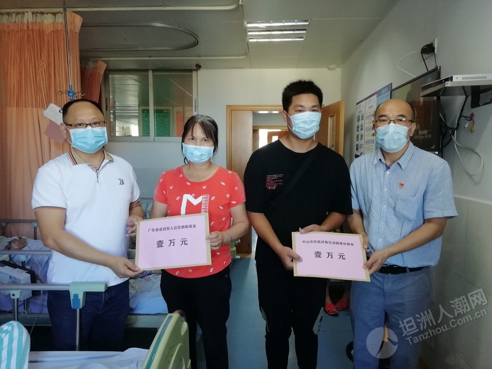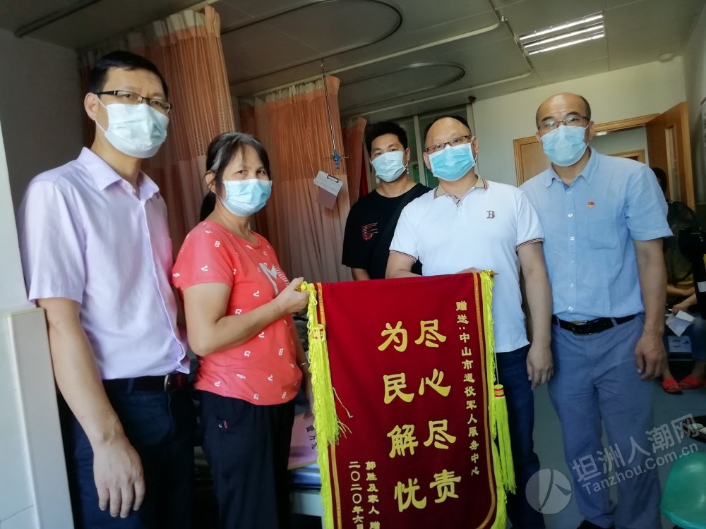 近日,中山市首個(gè)應(yīng)急救助資金申請已通過省退役軍人事務(wù)廳審核,坦洲籍退役軍人郭叔獲得了應(yīng)急救助資金1萬元。該筆應(yīng)急救助資金于日前由省退役軍人事務(wù)廳按照規(guī)定程序撥付到申請人個(gè)人賬戶。 6月18日,中山市、坦洲鎮(zhèn)兩級退役軍人服務(wù)中心及坦洲社會(huì)事務(wù)局相關(guān)負(fù)責(zé)人一行到坦洲醫(yī)院對郭叔進(jìn)行慰問,告知他申請的應(yīng)急救助資金已由省退役軍人事務(wù)廳撥付到賬,叮囑他要聽從醫(yī)生的囑咐,積極配合康復(fù)治療,樹立起戰(zhàn)勝疾病的勇氣和信心。郭叔家人特地制作了一面錦旗送到中山市退役軍人服務(wù)中心主任張波手中,由衷表達(dá)了對市、鎮(zhèn)、村各級退役軍人服務(wù)中心(站)的感激之情。