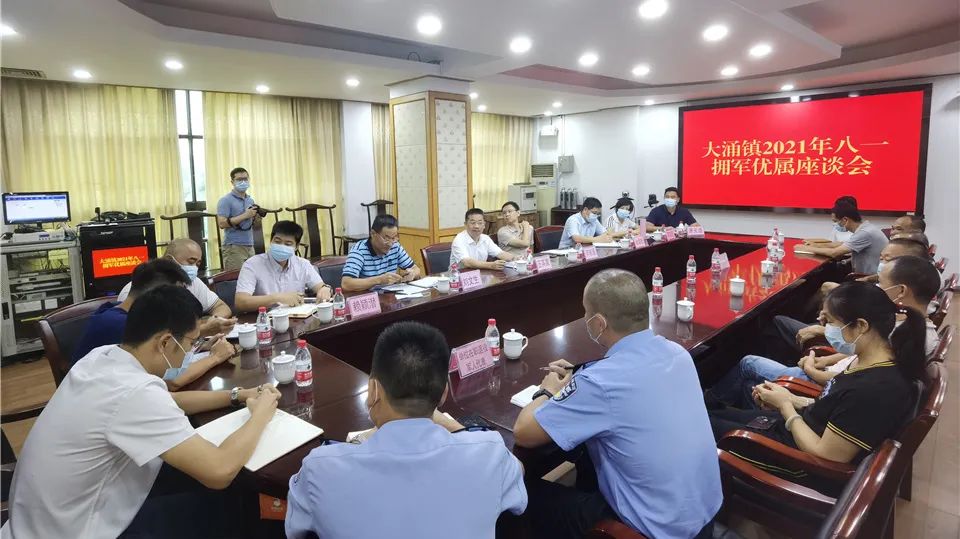 大涌鎮(zhèn)召開2021年“八一”擁軍優(yōu)屬座談會。鎮(zhèn)黨委書記王英康,鎮(zhèn)黨委副書記、鎮(zhèn)長李家豪,鎮(zhèn)黨委副書記劉文生,副鎮(zhèn)長余添宏及相關(guān)部門負(fù)責(zé)人參加了座談。