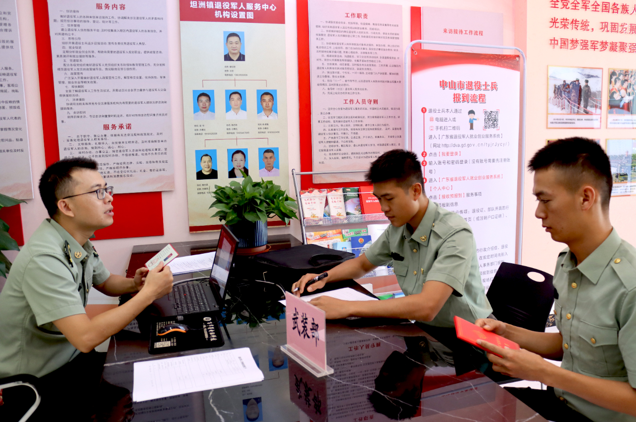 退役士兵返鄉(xiāng)前夕,坦洲鎮(zhèn)退役軍人服務(wù)中心就提前建立坦洲鎮(zhèn)2021年秋季退役士兵報(bào)到微信群,退役士兵加群后可查閱相關(guān)政策及業(yè)務(wù)事項(xiàng)、通知及信息,有疑問提出的話工作人員在群內(nèi)第一時(shí)間回復(fù)和解答問題。為簡化報(bào)到流程、提高效率,讓退役士兵少跑路,坦洲鎮(zhèn)公共服務(wù)辦公室積極謀劃,與人民武裝部聯(lián)合辦公,派出工作人員進(jìn)駐鎮(zhèn)退役軍人服務(wù)中心辦理預(yù)備役登記手續(xù)并做好相關(guān)政策宣傳及解釋工作。預(yù)備役登記手續(xù)辦結(jié)后,由退役軍人服務(wù)中心依次辦理報(bào)到登記、信息采集、組織關(guān)系轉(zhuǎn)接,并在政務(wù)服務(wù)大廳設(shè)立專窗辦理醫(yī)、社保接續(xù),在公安分局設(shè)立專窗辦理戶口落戶、換領(lǐng)身份證等服務(wù)保障項(xiàng)目。讓退役士兵享受方便快捷的報(bào)到服務(wù),體會(huì)“家”的溫馨。