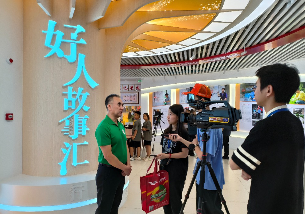 本次調(diào)研中,來自中央、省、市約20家媒體的記者,先后走訪東鳳鎮(zhèn)退役軍人服務(wù)中心、中山好人館等地。通訊員供圖 16日上午,媒體采風(fēng)團(tuán)來到了中山好人館,退役軍人代表李克和孫宏寧帶領(lǐng)采風(fēng)團(tuán)觀摩好人館,并介紹了退役軍人在志愿服務(wù)上如何為推動(dòng)全市的社會(huì)道德建設(shè)貢獻(xiàn)力量?!爸猩酵艘圮娙死弥驹阜?wù),宣傳了軍人作風(fēng)優(yōu)良的傳統(tǒng),這種公益形式也是對(duì)社會(huì)力量的補(bǔ)充,能夠?qū)θ鐣?huì)起到榜樣作用?!绷私獾街猩绞胁蹞碥娭驹阜?wù)隊(duì)深入基層開展國(guó)防和愛國(guó)主義教育、中山市擁軍支前紅旗服務(wù)隊(duì)參與各項(xiàng)日常生活應(yīng)急救援的事跡后,《小康》雜志記者王莉華說,中山市退役軍人深度參與公益所展現(xiàn)出的擔(dān)當(dāng)和作為給她留下深刻印象。中國(guó)報(bào)道網(wǎng)《前沿資訊》欄目主編陳偉贊發(fā)出感慨,“志愿服務(wù)隊(duì)的工作非常扎實(shí),退役軍人服務(wù)中心在用心用情服務(wù)退伍老兵上也做得很到位?!?/p>  退役軍人代表李克接受采訪。通訊員供圖