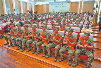 ▲出發(fā)前,接受一次生動(dòng)的國(guó)防教育。