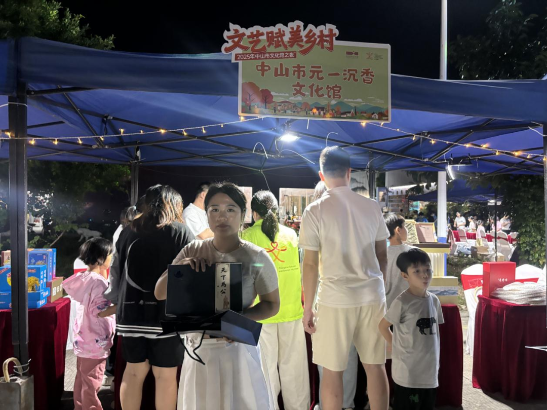 11月8日晚,“文藝賦美鄉(xiāng)村”2025年中山市文化館之夜在板芙鎮(zhèn)大盛陶藝非遺文化園成功舉辦。這場由中山市文化廣電旅游局指導,市文化館(中心館)、板芙分館等聯(lián)合主辦的文化盛宴,以“文藝賦能鄉(xiāng)村振興”為核心導向,匯聚20余家社會組織優(yōu)質資源,設置文藝晚會、共享集市、非遺體驗、集章打卡四大板塊,吸引2000余市民現(xiàn)場參與。中山市元一沉香產業(yè)投資有限公司作為重要參與方,攜中山五桂山沉香這一地理標志證明商標驚艷亮相,通過贊助活動獎品、展示特色產品等方式,讓地理標志的產業(yè)價值與文化魅力深度融入鄉(xiāng)村振興實踐。
