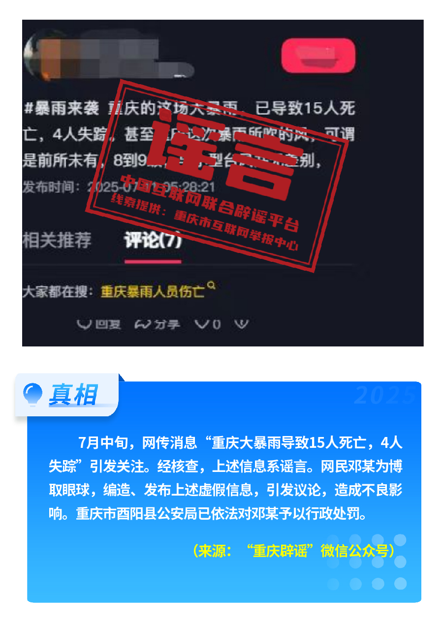 7月網絡謠言主要集中在公共政策、突發(fā)事件、社會民生等領域,假冒權威、憑空捏造,使用AI合成不實圖片和視頻,誤導公眾認知,污染網絡生態(tài)。網信、公安等部門重拳出擊,堅決打擊。