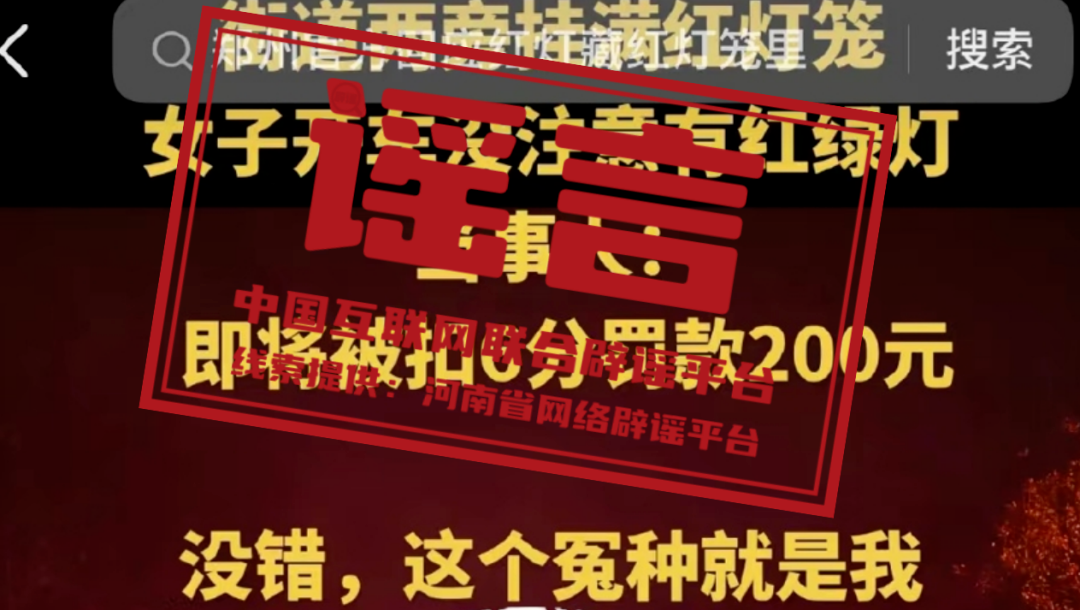 謠 言 鄭州街邊紅燈籠致“女司機”誤闖紅燈被罰?