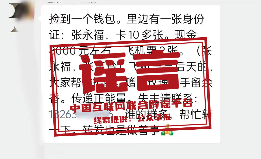 謠 言 多地有人撿到錢包、接力轉(zhuǎn)發(fā)“失物招領”信息?