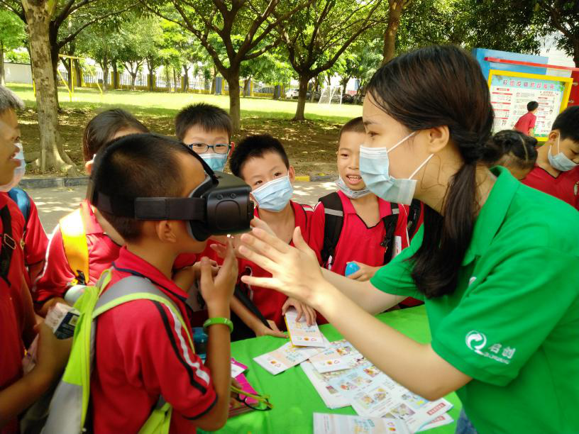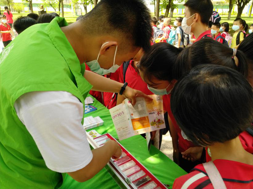 活動現(xiàn)場,擺設有仿真毒品模型、VR眼鏡的攤位吸引了眾多學生。社工熱情地向學生講解了毒品的危害和防范新型毒品的有關知識,呼吁同學們要遠離毒品,珍愛生命。