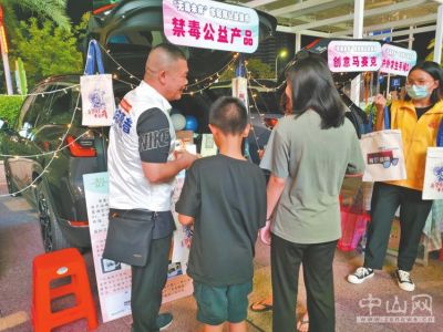 9月25日,夜幕降臨,中山市南區(qū)大信星匯店外,南區(qū)打擊治理電信網(wǎng)絡(luò)犯罪、掃黑除惡暨禁毒宣傳晚會的精彩表演吸引了不少市民駐足觀看。李德朗身穿白色的義工服,正積極向來來往往的行人介紹各款由戒毒學(xué)員制作的手工作品。被毒癮困擾多年成功戒斷的李德朗在清風(fēng)自游人公益服務(wù)中心社工引導(dǎo)下加入“友心人”隊伍,成為一名義工,對徹底擺脫毒癮更有信心。
