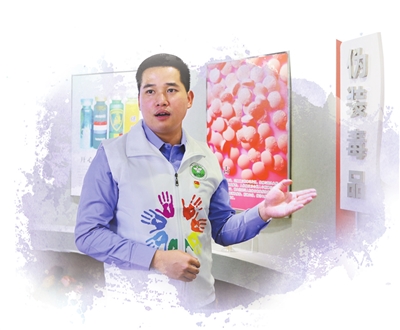 ▲3月31日,中山市禁毒志愿者總隊(duì)隊(duì)長(zhǎng)陳克誠(chéng)在中山市禁毒教育基地開展志愿服務(wù)。