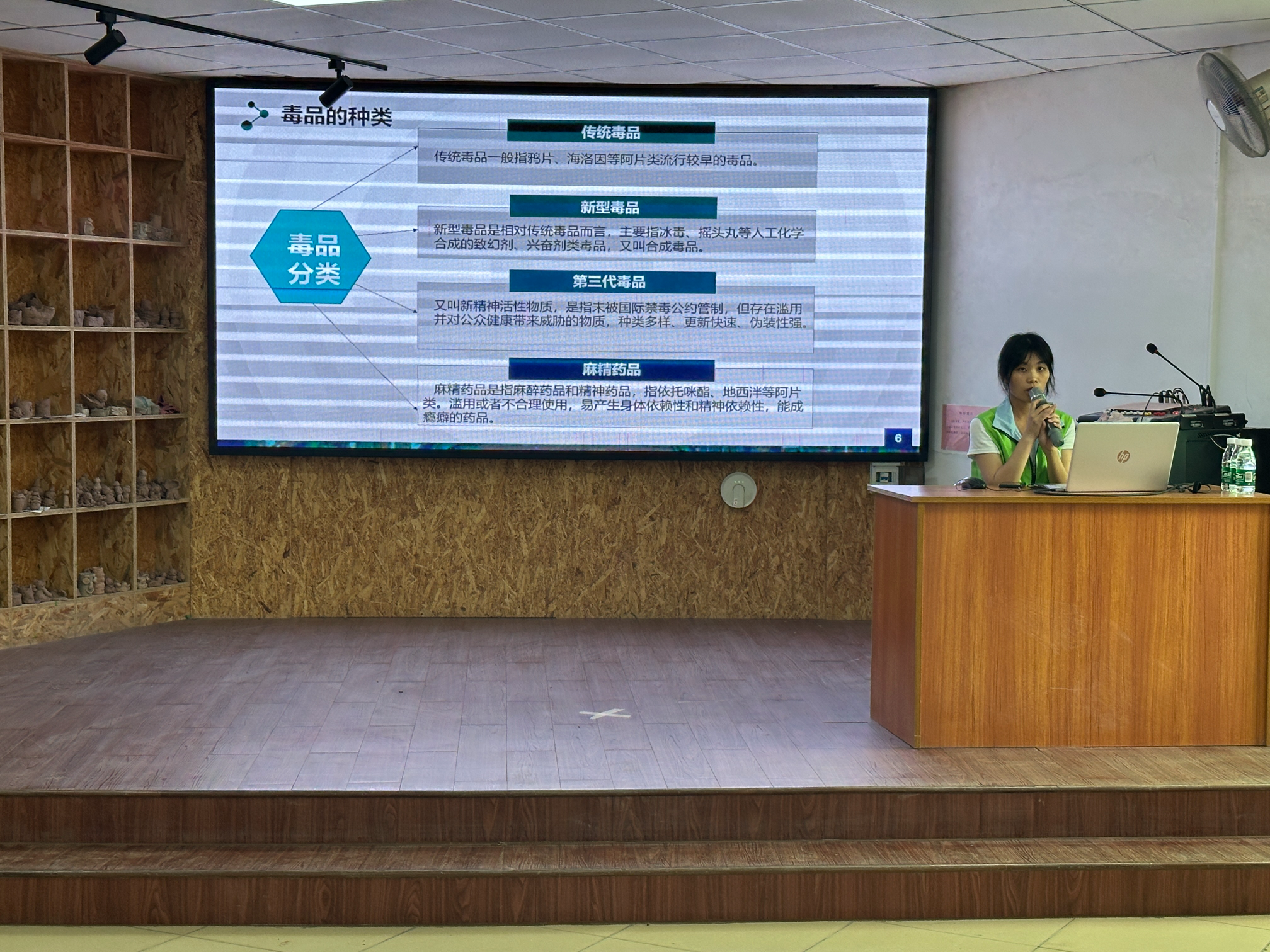 活動(dòng)現(xiàn)場,禁毒社工通過發(fā)放宣傳資料、講解禁毒知識(shí)、介紹新型毒品類型等方式,帶學(xué)生們深入了解到毒品的種類以及有關(guān)知識(shí)點(diǎn)。用通俗易懂的語言,結(jié)合真實(shí)案例,提醒同學(xué)們不要因?yàn)楹闷嫘膶?dǎo)致誤入歧途,學(xué)會(huì)抵制毒品誘惑。同時(shí),禁毒社工倡導(dǎo)學(xué)生們要時(shí)刻牢記禁毒理念,學(xué)會(huì)真愛生命。在互動(dòng)環(huán)節(jié)上,學(xué)生們積極參與回答問題,現(xiàn)場氣氛熱烈非凡,學(xué)生們更進(jìn)一步了解到毒品知識(shí)。最后,社工帶領(lǐng)大家一起宣誓禁毒誓詞,為他們的青春之路筑牢禁毒防線。