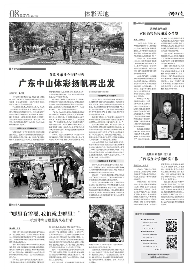 ▲中國(guó)體育報(bào)刊發(fā)了題為《首次發(fā)布社會(huì)責(zé)任報(bào)告——廣東中山體彩揚(yáng)帆再出發(fā)》一文。