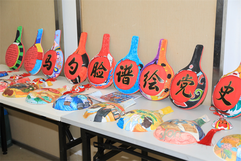 中國(guó)共產(chǎn)黨成立100周年標(biāo)識(shí)、井岡山勝利會(huì)師、南昌起義、嘉興游船上舉行的中共一大、萬(wàn)里長(zhǎng)征路……分享會(huì)現(xiàn)場(chǎng),刻畫(huà)了一個(gè)個(gè)黨史故事的木瓢排列成行,十分引人注目?!斑@是國(guó)家級(jí)非物質(zhì)文化遺產(chǎn)——馬勺臉譜。它是陜西的傳統(tǒng)民間藝術(shù),以馬勺作‘紙’,將社火臉譜以彩繪的形式繪制在上面?!瘪R勺臉譜傳承者、沙溪中學(xué)老師馬世杰介紹。作為一名美術(shù)老師,馬世杰通過(guò)民間藝術(shù)的再創(chuàng)新來(lái)引導(dǎo)學(xué)生學(xué)習(xí)黨史,在他的帶領(lǐng)下,沙溪中學(xué)的學(xué)生將南粵特色、中山元素、國(guó)風(fēng)動(dòng)漫等融入馬勺臉譜的創(chuàng)作中。“繪制黨史故事前,我們查閱了大量資料,并向?qū)<覍W(xué)者請(qǐng)教,在創(chuàng)作中引導(dǎo)學(xué)生們了解、學(xué)習(xí)黨史。”